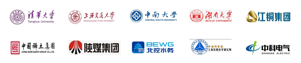 ? ? ? ?清华大学、上海交大、中南大学、湖南大学、武汉科技大学、中国科学院合肥物质科学研究院、中国科学院上海有机化学研究所、湖南省陶瓷研究所、兰州兰石能源装备工程研究院、黄石市泓义城市矿产资源产业研究院、中国稀土、江铜集团、陕煤集团、北控水务、中科电气、四川冕宁方兴稀土、缅甸佤邦金源矿业、湖南搏盛天弘新材料、湖南晶碳新材料等公司。